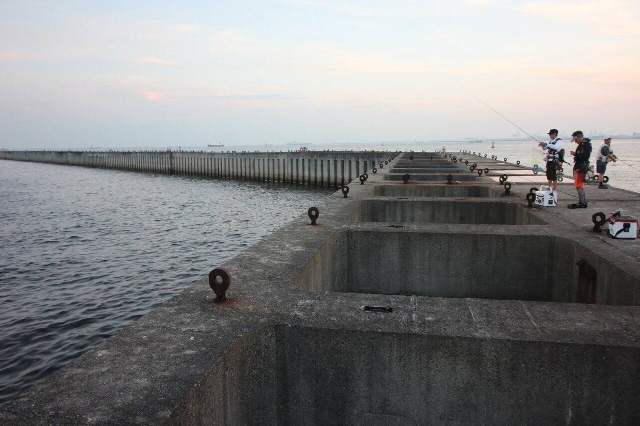 今年も大阪・堺の沖波止に位置する新波止では、イガイが付き始めるのと同時に爆釣モードに入ってきた。
