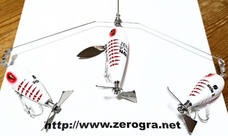3つのルアーを同時にスイミングさせることになりますから、水面では3つのペラが回転して、波が複数発生。