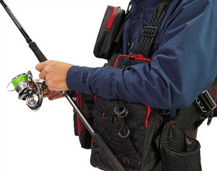 ロッドホルダー機能やチェストハーネス機能が付いているフロートゲームベストDF-6224!