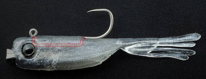 そのぶんワームの可動域が広がりますし、バスの口に吸い込まれやすくなっています。