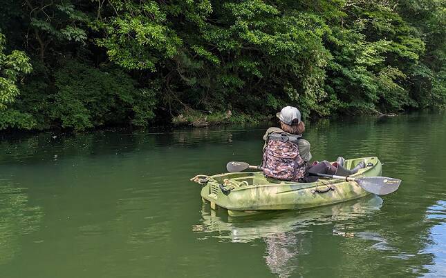 カヤックやボートで池に浮いたとき、目の前の枝にラインがぶら下がっていたら、フックに気を付けながら同じように回収しましょう。