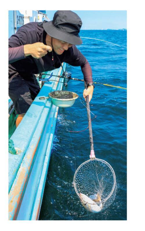 射場さんは越谷で「美食料理つくし」というお店を経営されていて、仕入れを兼ねての釣行のようだが、「ここのアジは大人気なんですよ。こんなのよそではまず釣れませんからね」とご満悦の笑顔だ。