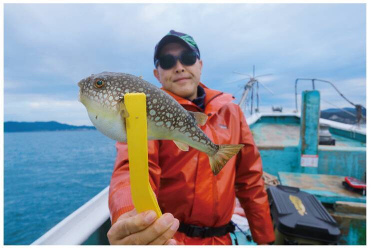 ヒガンフグ狙いでは今期初出船となった取材日は、20~30cm級を中心に35cm前後の良型交じりでトップ9尾、コモンフグやショウサイフグも釣れた。