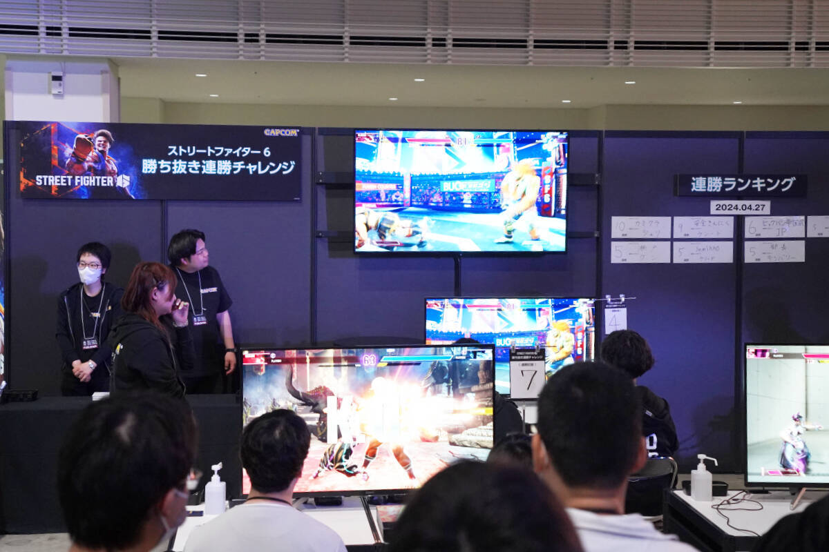 カプコンブースでは「ストリートファイター6」勝ち抜き連勝チャレンジが開催されました。