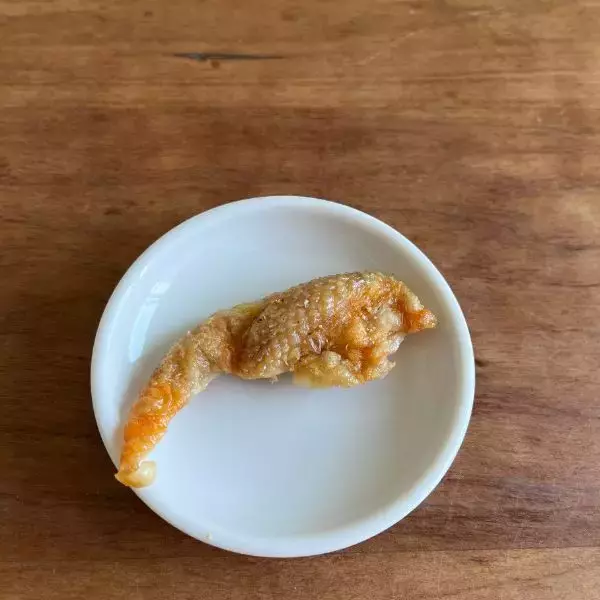 完成した『鶏皮せんべい』を小皿にのせた様子