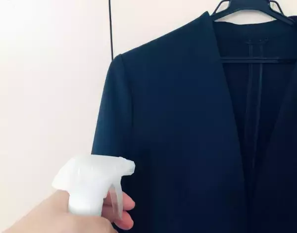 スーツにスプレーを吹きかける様子