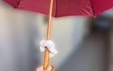 「傘に付けてスライドさせると…? 100均の『シュシュ』が超便利だった」の画像