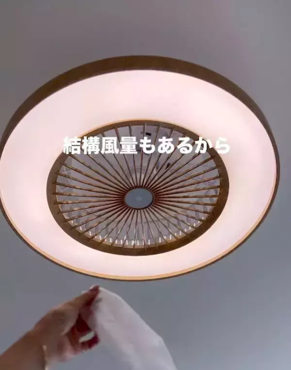 シーリングファンを手にしている様子