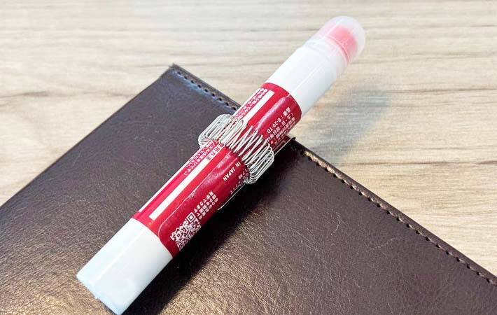 ペンホルダーの背面にはクリップが付いており、ノートや手帳に差し込むことで固定できます。