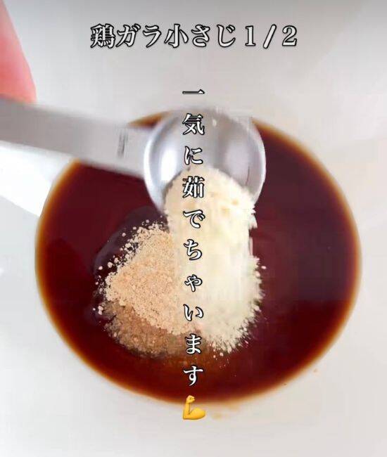 まず、器に『A』をすべて入れて、混ぜ合わせます。お皿に直接調味料を入れることで、洗い物が減り時短になりますよ。