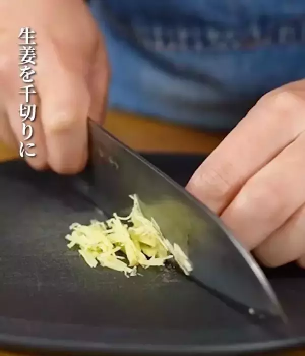 ショウガを千切りにする様子