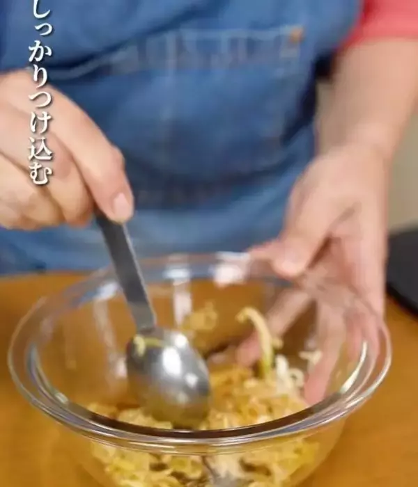 調味料を入れたボウルに切り干し大根を入れて混ぜ合わせる様子