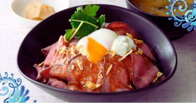 じっくり肉の旨みを閉じ込め、柔らかく仕上げたローストビーフに、焦がしにんにく香る醤油ソースがベストマッチ。わさびヨーグルトと一緒に。