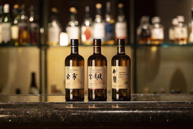 心ゆくまで味わえるウイスキーは、グレーンを使わずに最上級の飲みやすさを追求したブレンドの技が光る「竹鶴ピュアモルト」。加えて、竹鶴氏が理想の地として選んだ北海道・余市の石炭直火蒸留によって生まれた「シングルモルト余市」。そして、二つの清流が出合う東北の山あいで育まれた「シングルモルト宮城峡」の3種だ。