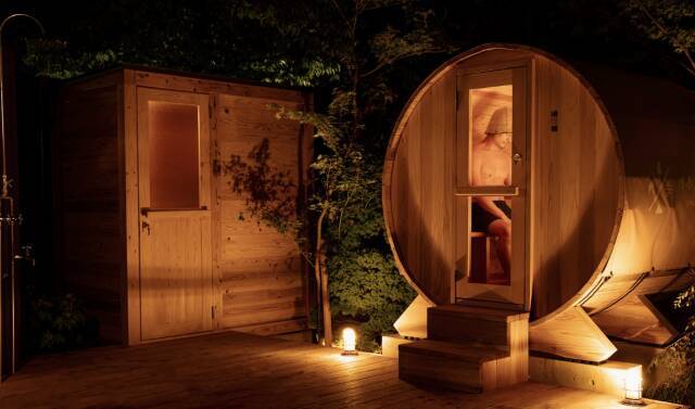 山梨県石和温泉の「ホテルふじ」内にオープンした、プライベートアウトドアサウナ「MATKA(マトカ)」は、カップルでも楽しめるサウナだ。