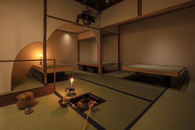 同店は、茶道宗和流*十八代の宇田川宗光氏が監修する茶事体験の店で、蝋燭灯りの小間の茶室で楽しむ茶道の点前、広間でくつろぎながら味わう茶懐石が愉しめる。