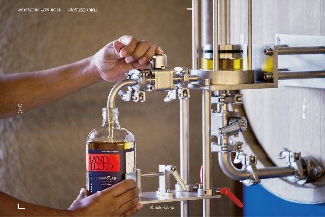 SHINDO LABは福岡県朝倉市の「新道」と呼ばれるエリアの約5,500坪もの広大な敷地に、ウイスキーの蒸留所とワイナリー、体験型のショップを運営。「THE QUEST FOR THE ORIGINAL(独創性の追求)」をコンセプトに、お酒の可能性や地域の魅力を伝える商品を展開している。