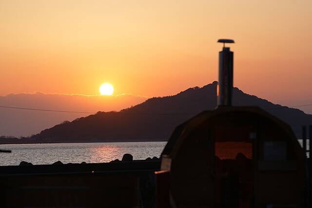 バレルサウナまでは徒歩10秒。宿泊ゲスト限定となるナイトプラン(15:30~21:30まで使い放題)やモーニングプラン(7:30~10:30まで使い放題)を利用すれば、赤く染まる夕日や朝の爽やかな風を浴びながら、非日常的なととのいを迎えることも可能だ。