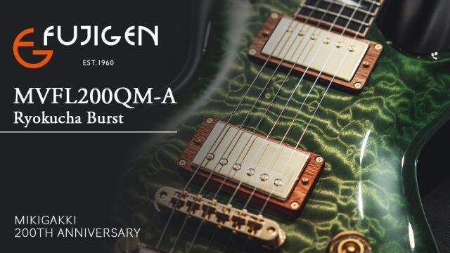 また、「MVFL200QM-A Ryokucha Burst」は、今回FUJIGENが”MADE IN JAPAN”への想いを込めて「Ryokucha(緑茶) Burst」と命名した貴重なモデル。日にかざすと鮮やかな緑が強調されて美しい色合いになる。