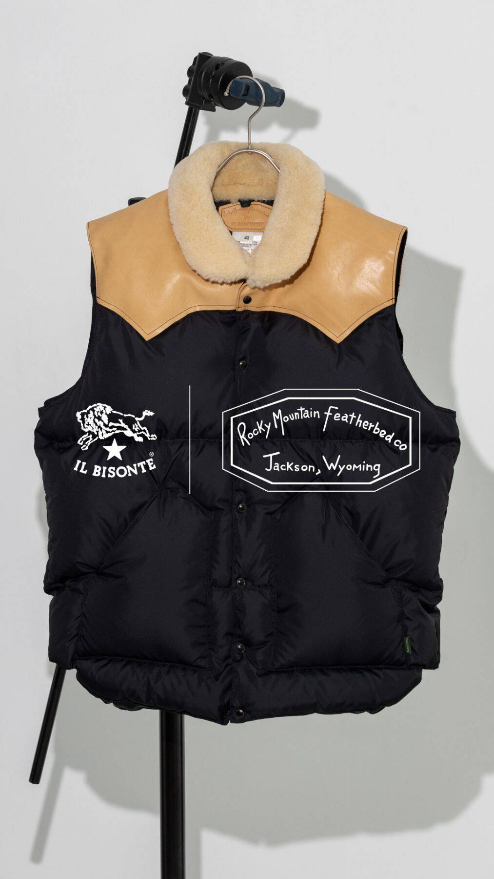 今回、そんな両者が初のコラボレーション。Rocky Mountain Featherbedのアイコン的存在「Christy Vest(クリスティーベスト)」をベースに、IL BISONTEのエッセンスを取り入れた特別仕様のダウンベストを作り上げた。