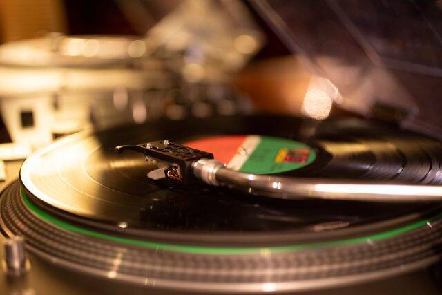 シックなレンガ造りのバーでレコード音源を楽しむ夜