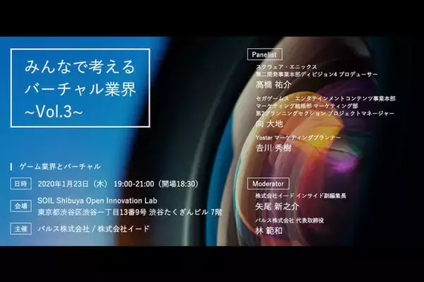 第三回目のテーマは「ゲーム業界 × バーチャル」。今回もゲーム領域での様々なバーチャル的アプローチを仕掛けるゲストをお呼びし、バーチャルコンテンツの未来を語り尽くしてもらいます。