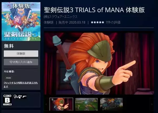 PlayStationStoreにて、PS4向けとなる『聖剣伝説3TRIALSofMANA』体験版の配信が、さきほどスタートしました。1995年9月30日に発売されたスーパーファミコンソフト『聖剣伝説...