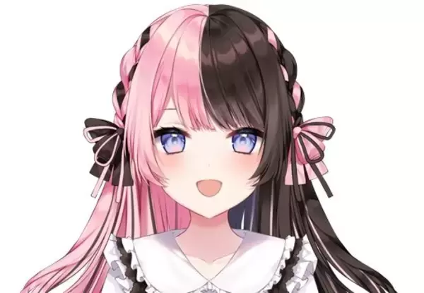 瞳は薄い青紫、ウェーブのかかったロングヘア、右側がピンクで左側がブラウンとキッチリ分けたツートンカラー、ピンク・ブラック・ホワイトを基調にしたフェミニン・ガーリー・ゴスロリに寄せたファッションが目を惹くひなのさん。