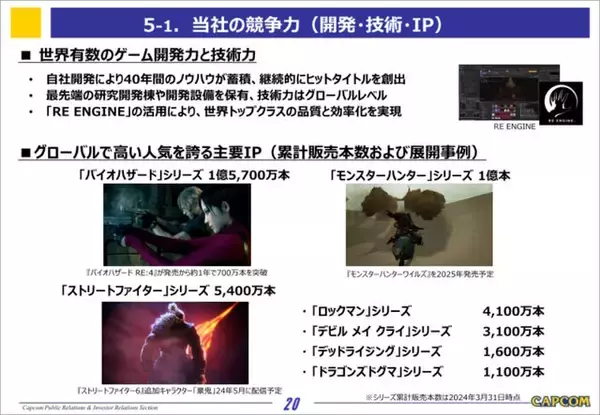 ※画像は「カプコン2024年3月期決算補足資料」より。