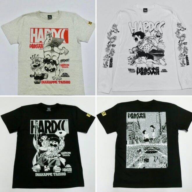 「いなかっぺ大将」コラボTシャツはハードコアチョコレートの店舗、オンラインストアやAmazonなどで販売中です。