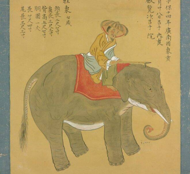江戸時代までにゾウが日本へ来たのは7回で、室町時代に南蛮船に乗っていたインドゾウが最初と言われている。今回紹介するのは享保13年 (1728)に、将軍 徳川吉宗に献上されるため日本へやって来た5頭目のアジアゾウ。