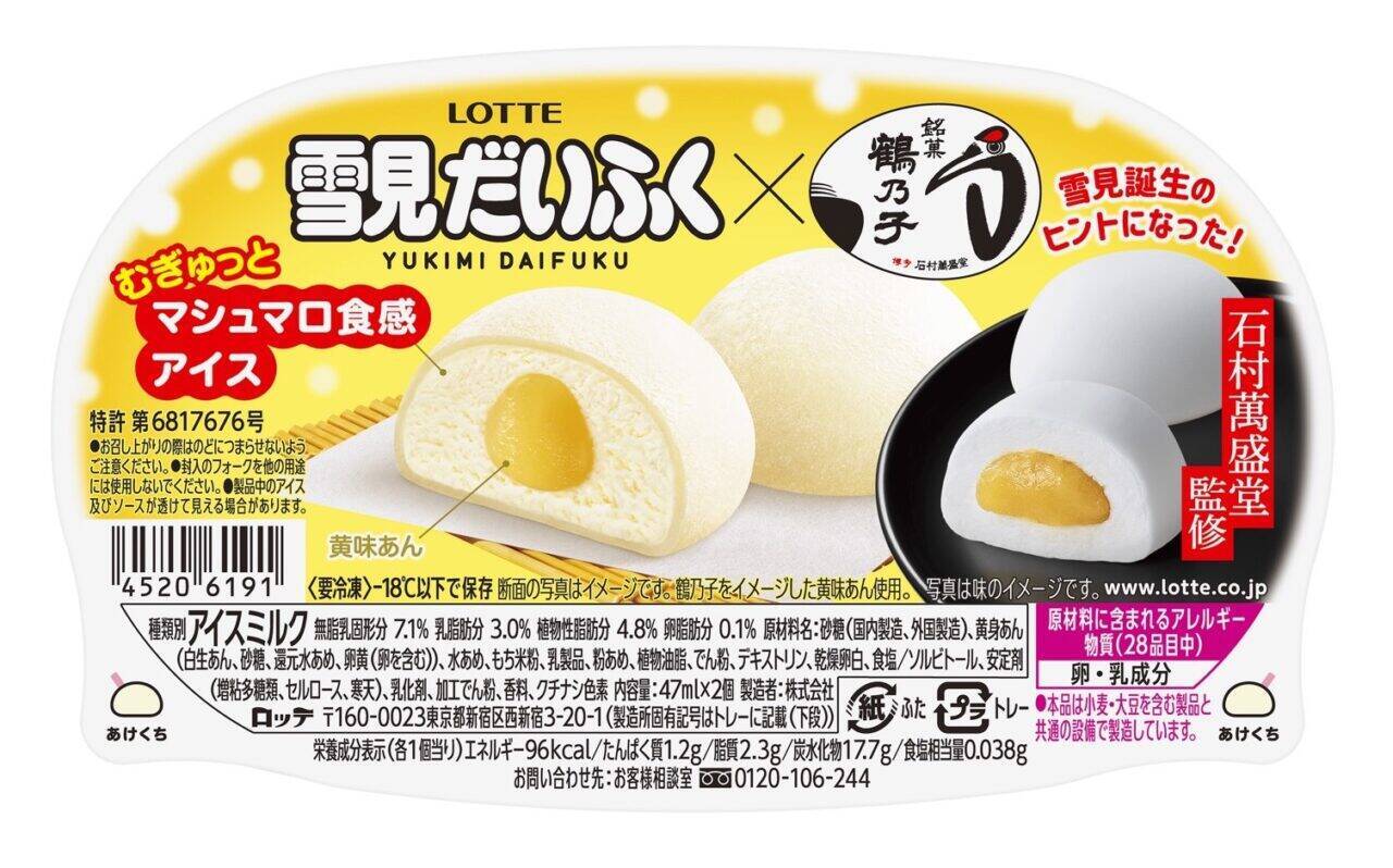 「石村萬盛堂監修 雪見だいふく×鶴乃子」は、そんな「鶴乃子」をイメージした黄味あんをセンターに入れ、むぎゅっとしたマシュマロ食感のアイスで包み込むことで、「鶴乃子」の味わいを表現しています。