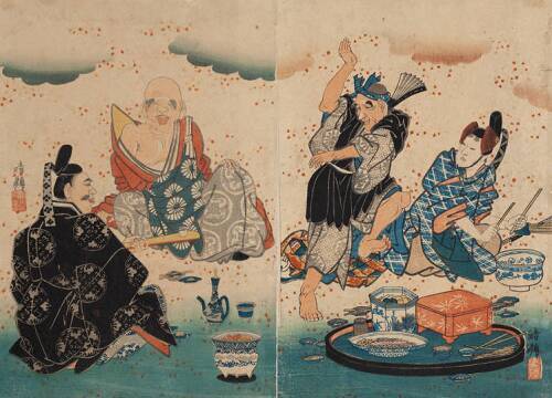 義経と景時の対立。歌川国芳「源義経梶原逆櫓争論図」