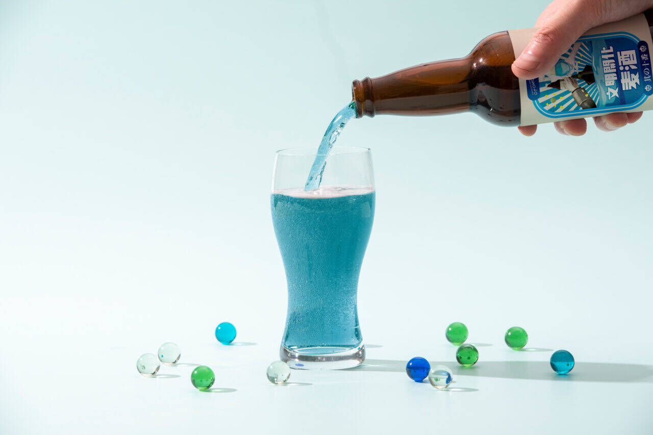 ビールと同じく夏によく飲まれる「ラムネ」の味や香り、色をイメージして醸造しています。色合いはもちろん青。バニラビーンズを使用することで本物のラムネのような香りが引き立てられています。