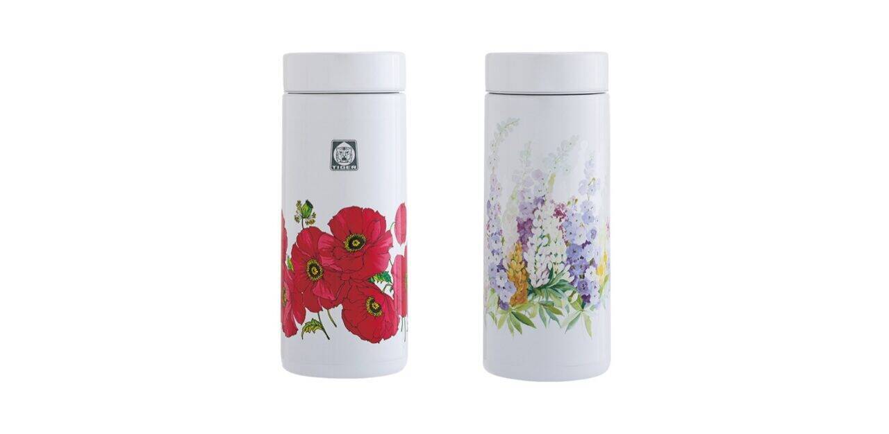 同じく創業100周年を記念して、1970年代に販売した電子ジャーで人気を博した、懐かしの花柄をあしらった真空断熱ボトル2種が登場です。