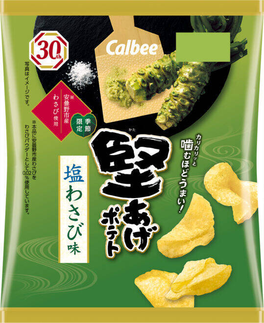 「堅あげポテト」のわさび系フレーバーとしては、2014年5月に「堅あげポテト わさび味」を期間限定で発売。2016年・2018年に再発売しました。2019年にはわさびの辛さをアップし、『堅あげポテト 塩わさび味』として発売。2022年・2023年に続き、今年も再発売されることに。