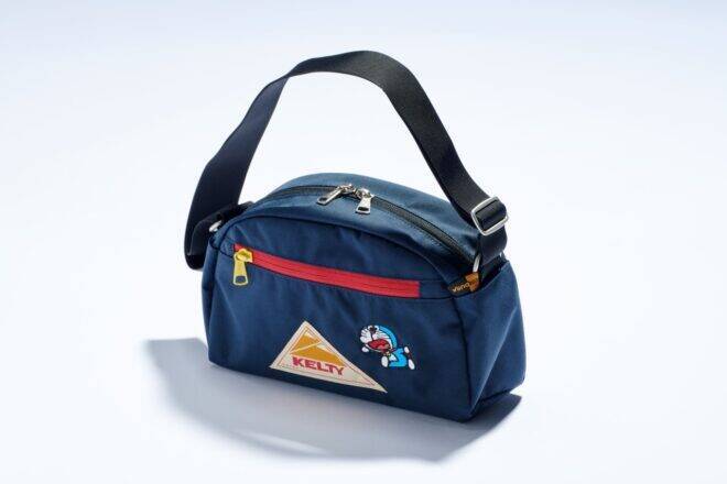 本商品は、小学館のアウトドア雑誌「BE-PAL」の公式通販ショップ「BE-PAL 野遊び道具店」にて発売されたオリジナル商品で、ケルティの人気ショルダーバッグに、ドラえもんの刺繍が施されています。