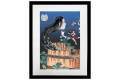 鬼太郎が蚊帳の中で昼寝をしている時に、小平二が目玉おやじを訪ねて蚊帳の中を覗いているという図。ゲゲゲの鬼太郎のキャラクターの世界観と合うように色味や質感の表現を調整しながらもモチーフの浮世絵をなるべく忠実に再現。怖さの中にもどこかほっこりさせられる作品になっています。