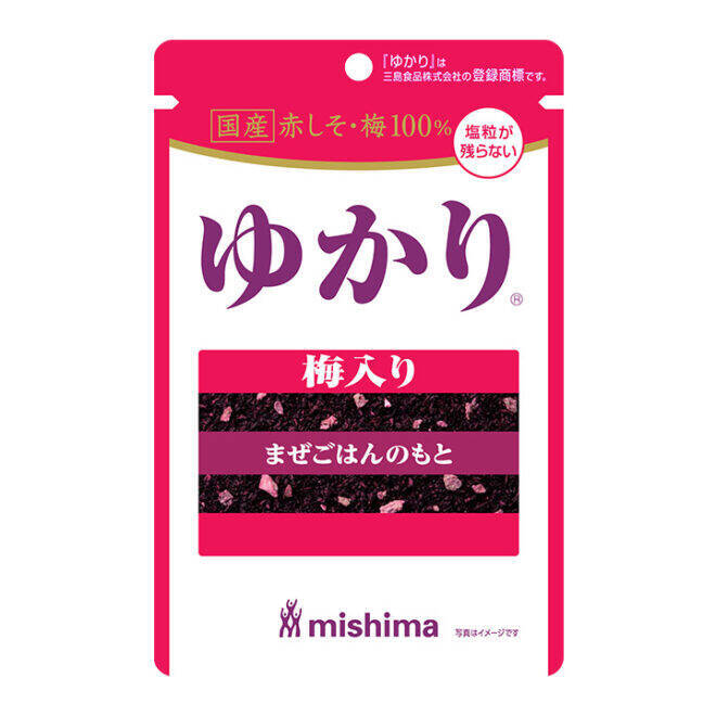 通常の「ゆかり」は、赤しそに塩などを加えたものとなっていますが、本商品では、国産の赤しそと梅をブレンド。