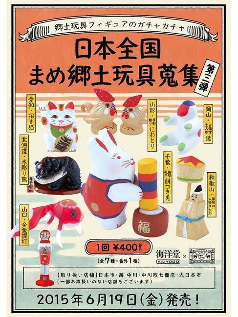 「日本全国まめ郷土玩具蒐集」第3弾は2015年6月19日(金)から1回¥400のカプセルフィギュアとして登場です!