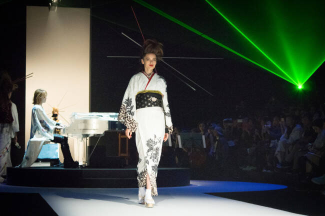 それでは「YOSHIKIMONO FIRST COLLECTION」の様子をフォト満載でお届けします。Japaaan編集部としては、とてもチャレンジングでロックなYoshikimonoを着物のカタチのひとつとして楽しめて、アリだと思います。今後の展開も引き続き追っていきたいと思います。