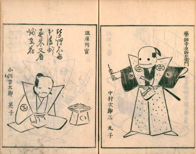 まずは耳鳥斎の作品の中でもとりわけユルさに溢れた作品集「絵本水や空(安永9年・1780年 )」の一部をご紹介します。この作品は歌舞伎役者を描いたもの。