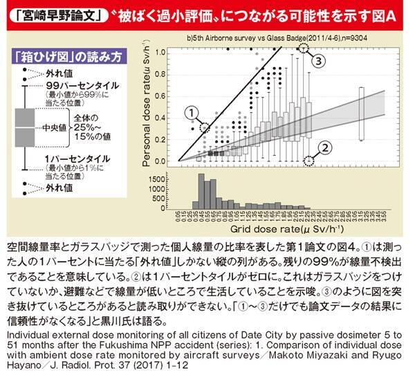 「第1論文の最後部分にこんなことが書かれています。《各参加者が実際に住民登録された住所に住んでいたのか、(中略)ガラスバッジを正しく装着していたか不明である。(中略)それゆえ厳密にいえば、ガラスバッジで測定された値は、必ずしも実際の個人線量と等しいとは言えない。これは、この論文の限界であるといえる。しかしながら私たちは、それらが(中略)得られた結果に大きく影響しないと信じる。》」