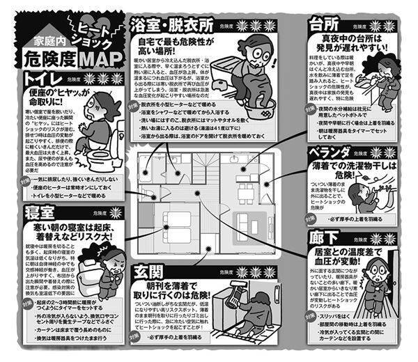 浴室で起こるヒートショックについては、これまでも危険性が指摘されてきた。しかし、気を付けなければいけない箇所は家中にあると、菅原脳神経外科クリニックの菅原道仁院長は警鐘を鳴らす。