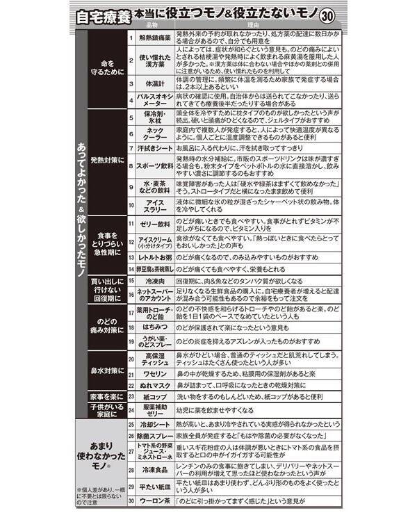 【図解】自宅療養で役立ったもの・役立たなかったもの30