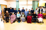 写真上段左から、岡田さんの次男・孝さん、スタッフ・小林幸恵さん、同・山田みよ子さん、同・保科梨絵さん、岡田さん、入居者・キクエさん、岡田さんの姪・佐々木由希さん、スタッフ・赤荻鉄夫さん、岡田さんの長男...