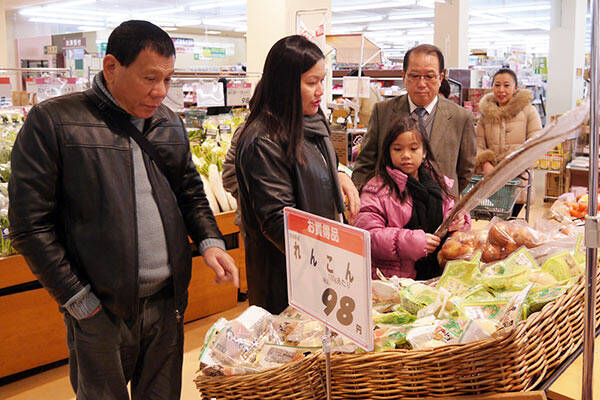 (調布のスーパーで買い物するドゥテルテ大統領一行)