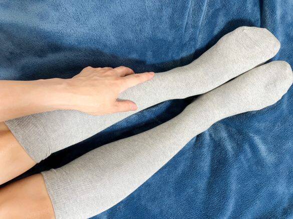 では、実際に履いてみたいと思います。優しい着圧がどの程度なのか、気になる!