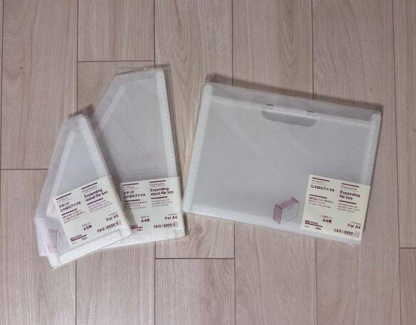 シンプルなファイルボックスや収納ケースなど、自宅やオフィスの整理整頓に役立つアイテムがたくさん揃う無印良品。今回新たに登場したのが、書類や小物の分類に便利なじゃばらタイプの自立型ファイル。無印良品のじゃばらファイルにはサイズや形、ポケット数の異なる7種類が揃っていますが、筆者が購入したのは「スタンダードタイプ」のA4用12ポケットと、「スタンドじゃばらファイル」のA4用3ポケット、A5用6ポケットの3種類です。