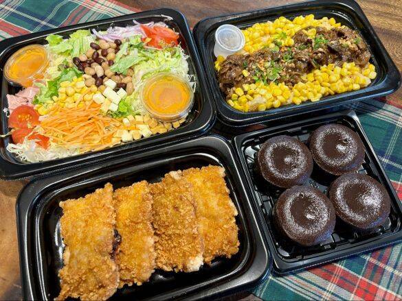 彩と栄養がこれひとつで完結する「コブサラダシェアパック」。キャベツ、レタス、トマト、コーン、ミックスビーンズ、ハム、にんじんなど具沢山のコブサラダで、パーティにぴったりな見た目の華やかさが特徴です。大容量なので大人数のパーティ向きです。